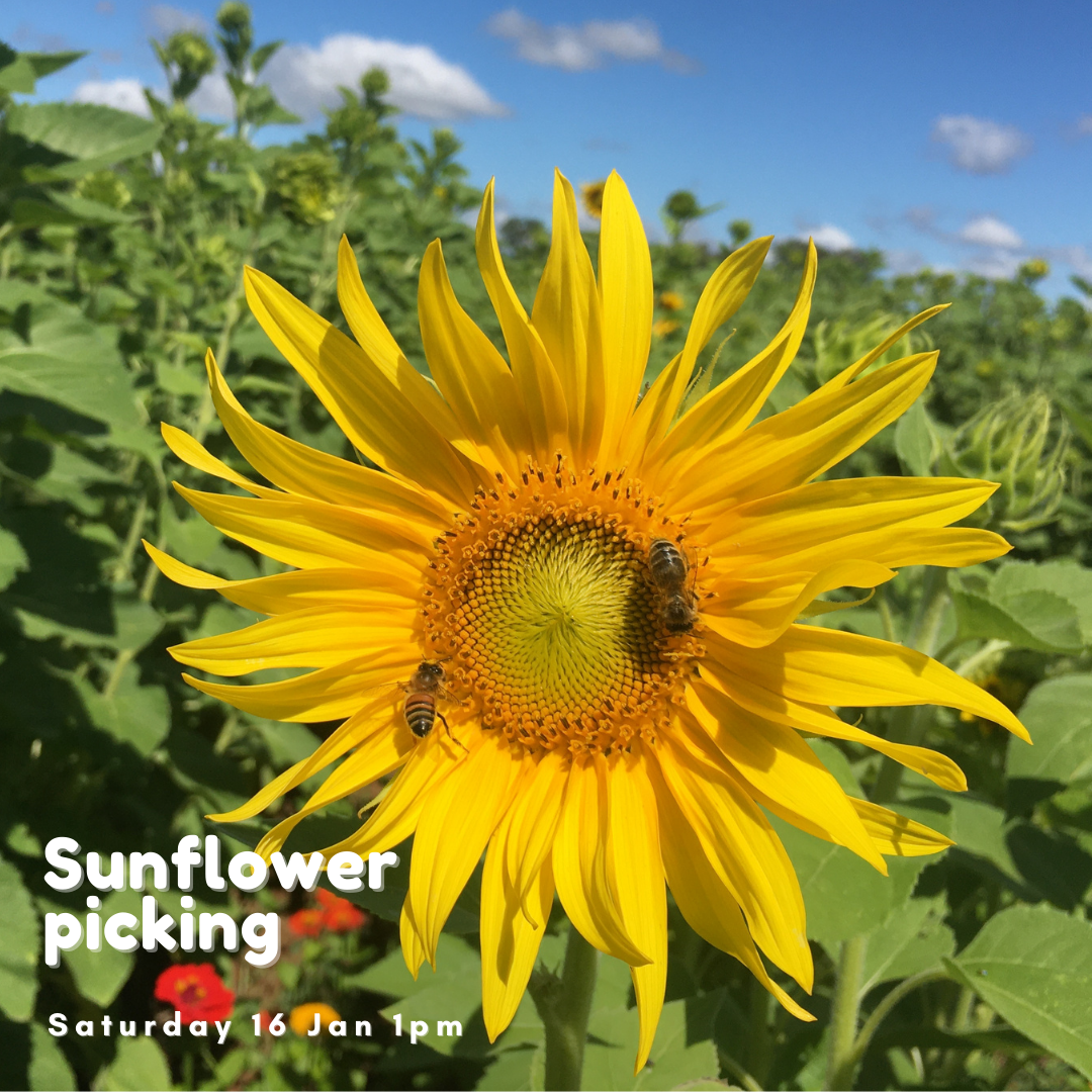 This is not a whole field of sunflowers but a mixed species strip planted to encourage and feed pollinator insects. During cherry picking we had lots of visitors ask if they could come back to see the flowers bloom and now’s the time!